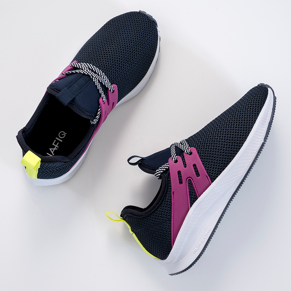 Tenis deportivo hecho de textil super ajustable y flexible, con suela de tr bicolor antioxidante y anti derrapante.